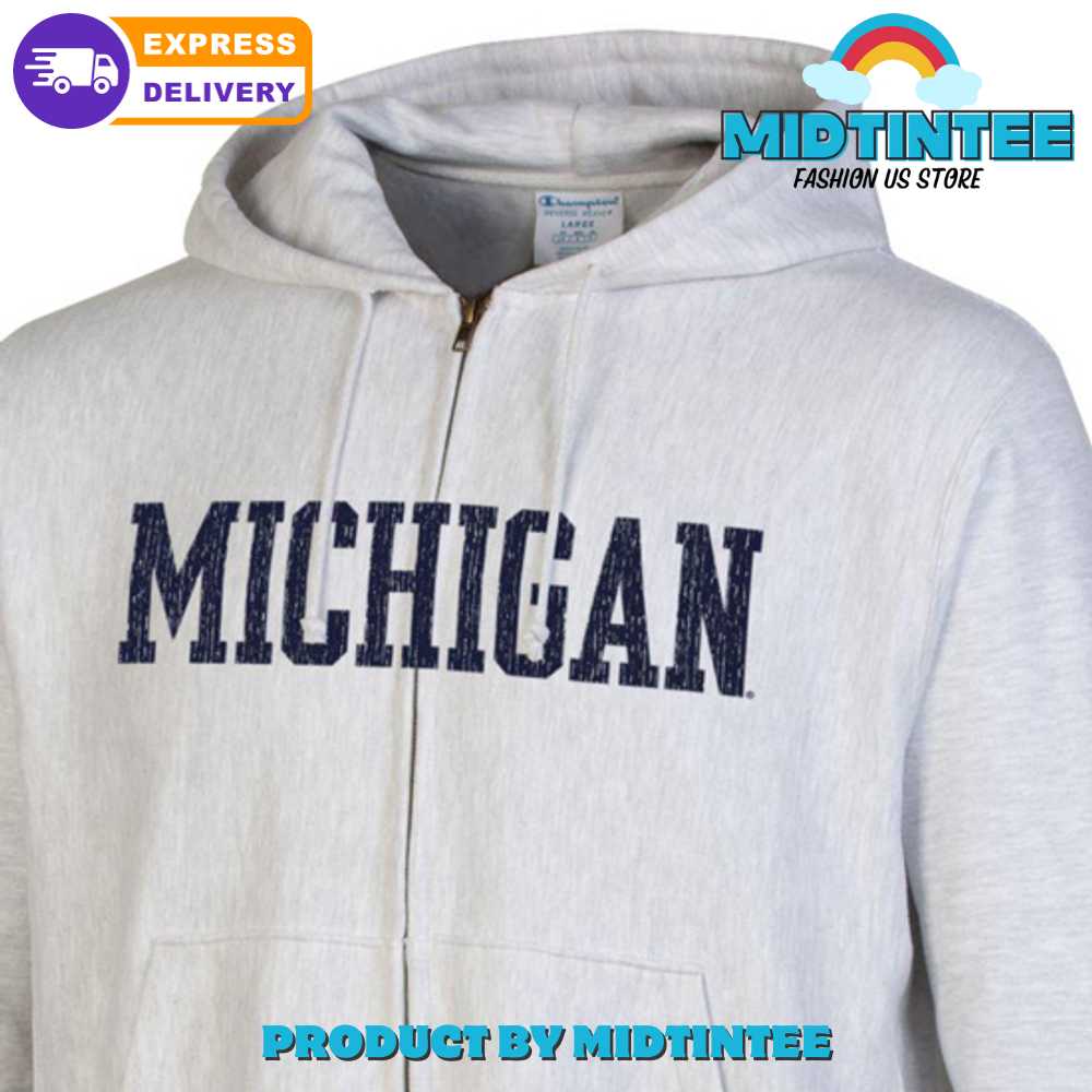 Champion University of Michigan Silver Gray Reverse Weave Full Zip Hoodie
