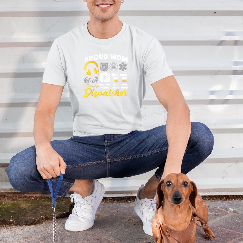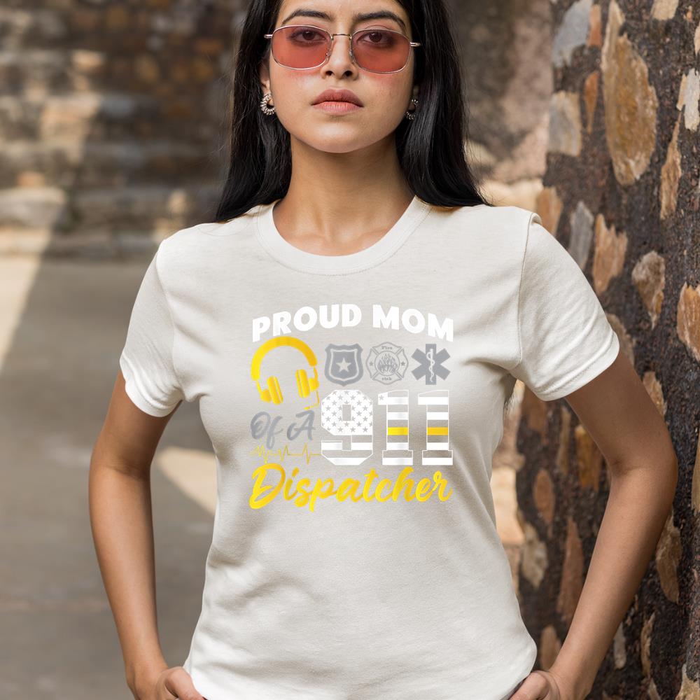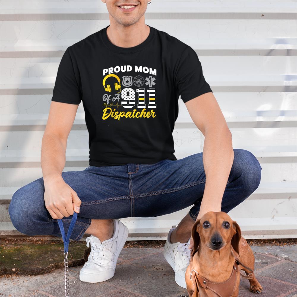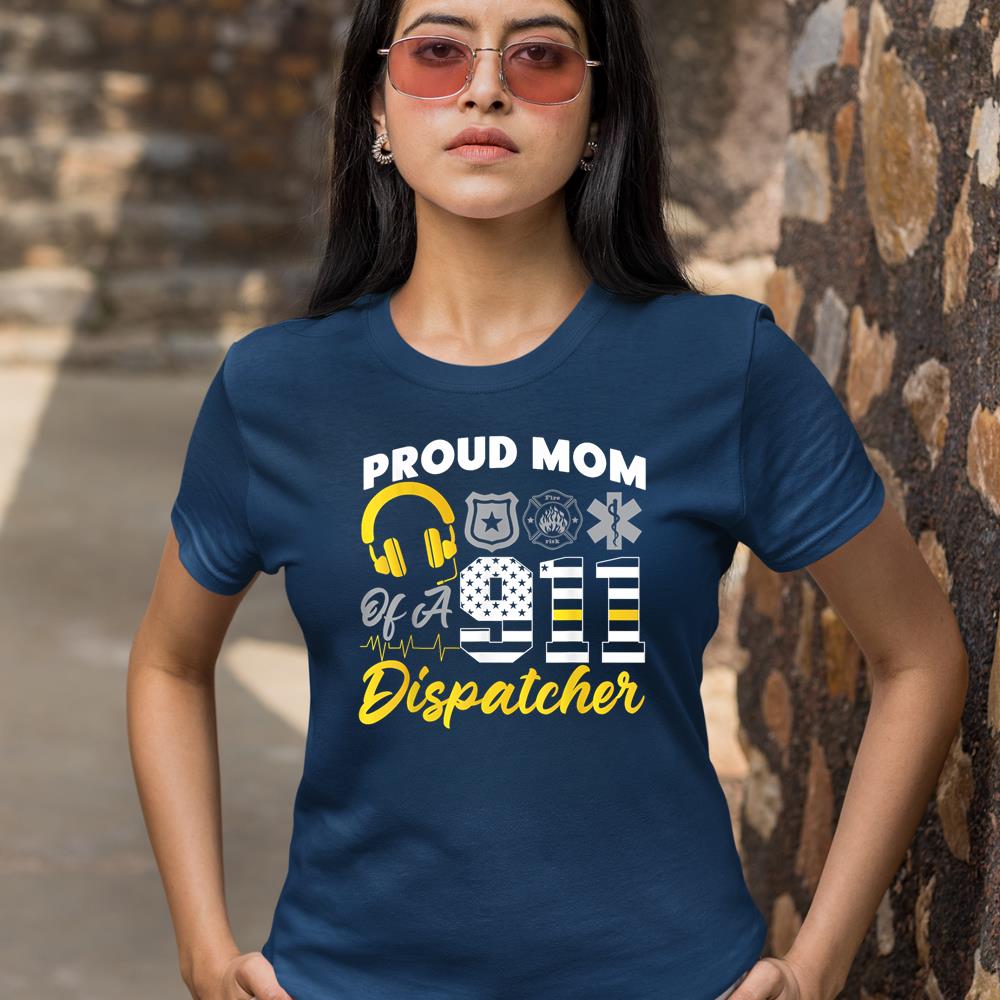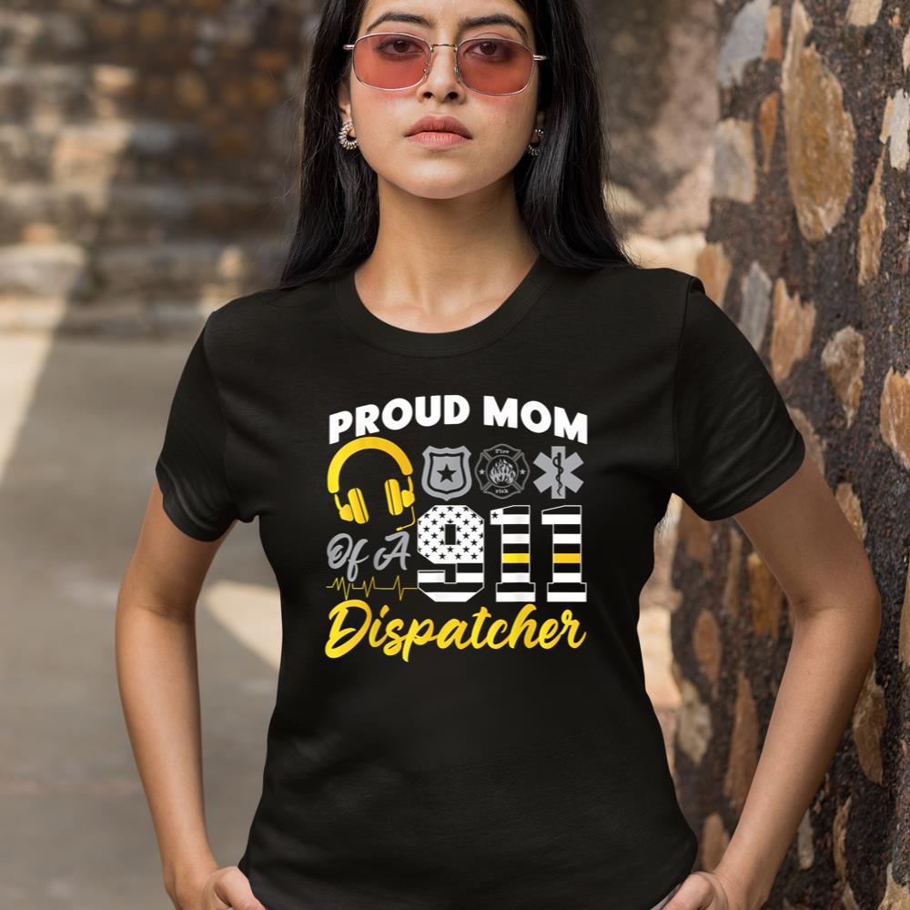 911 Dispatcher Thin Gold Line American Flag Proud Mom T-Shirt – Black, XL