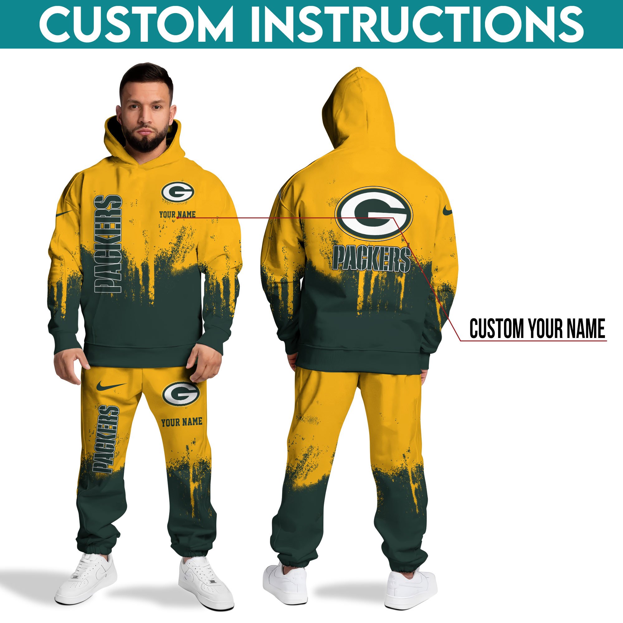 Green Bay Packers Hoodie Sweatpants Set Custom Your name, Sport Hoodie Sweatpants Set, Sport Gifts For Fan Gift For Sport Music Fans