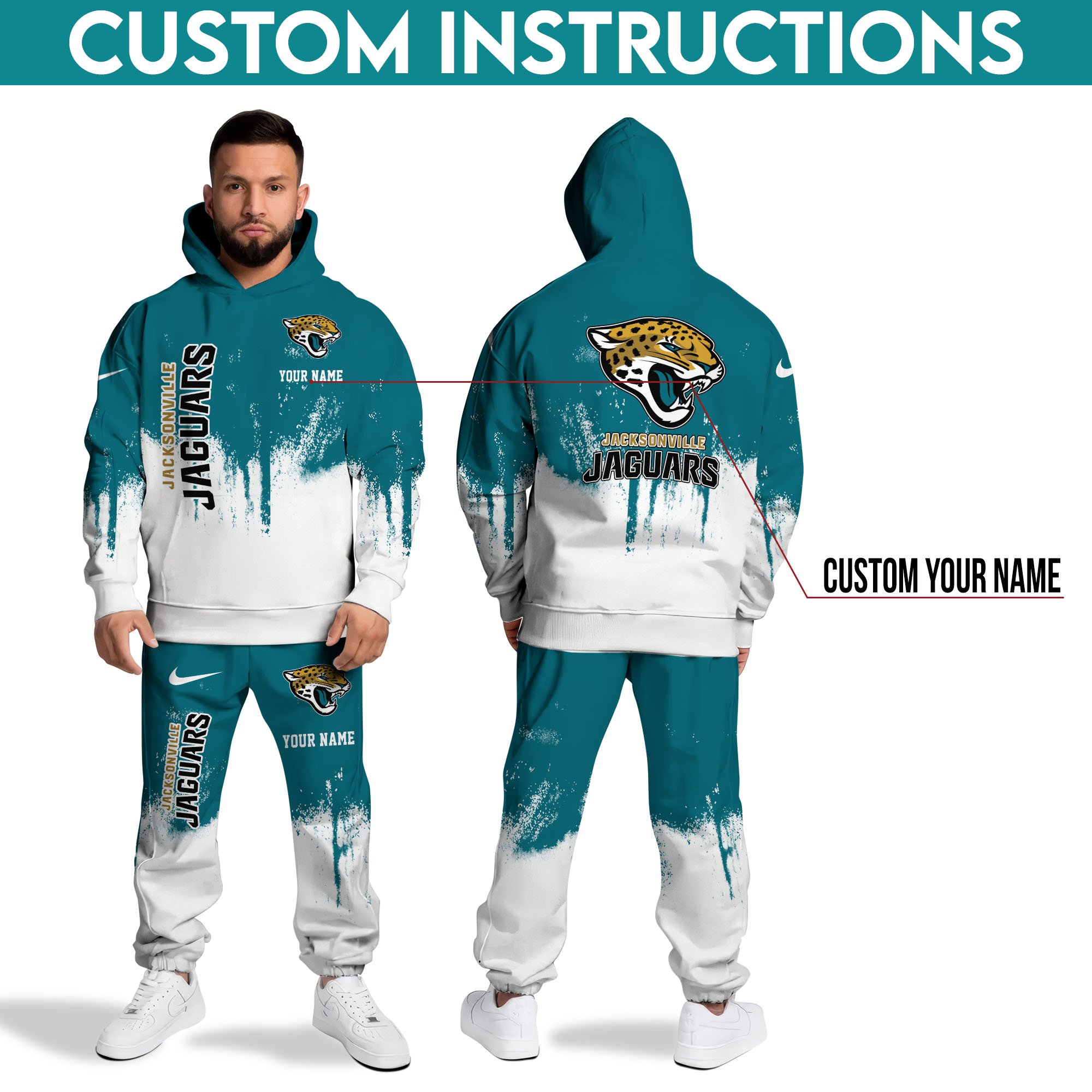 Jacksonville Jaguars Hoodie Sweatpants Set Custom Your name, Sport Hoodie Sweatpants Set, Sport Gifts For Fan Gift For Sport Music Fans