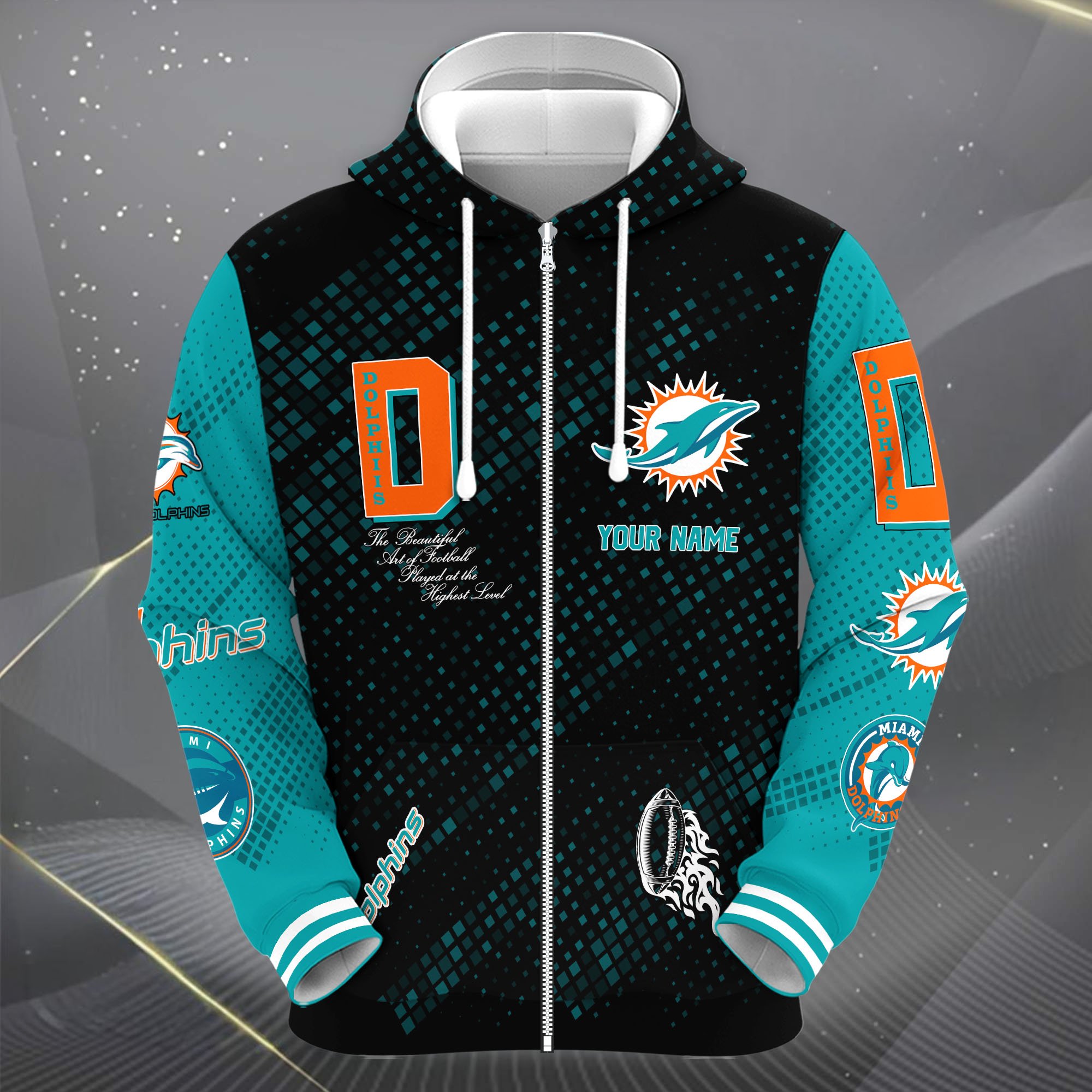 Miami Dolphins Zip Up Hoodie Joggers Set Custom Your name, Sport Zip Up Hoodie Joggers Set, Sport Gifts For Fan Gift For Sport Music Fans