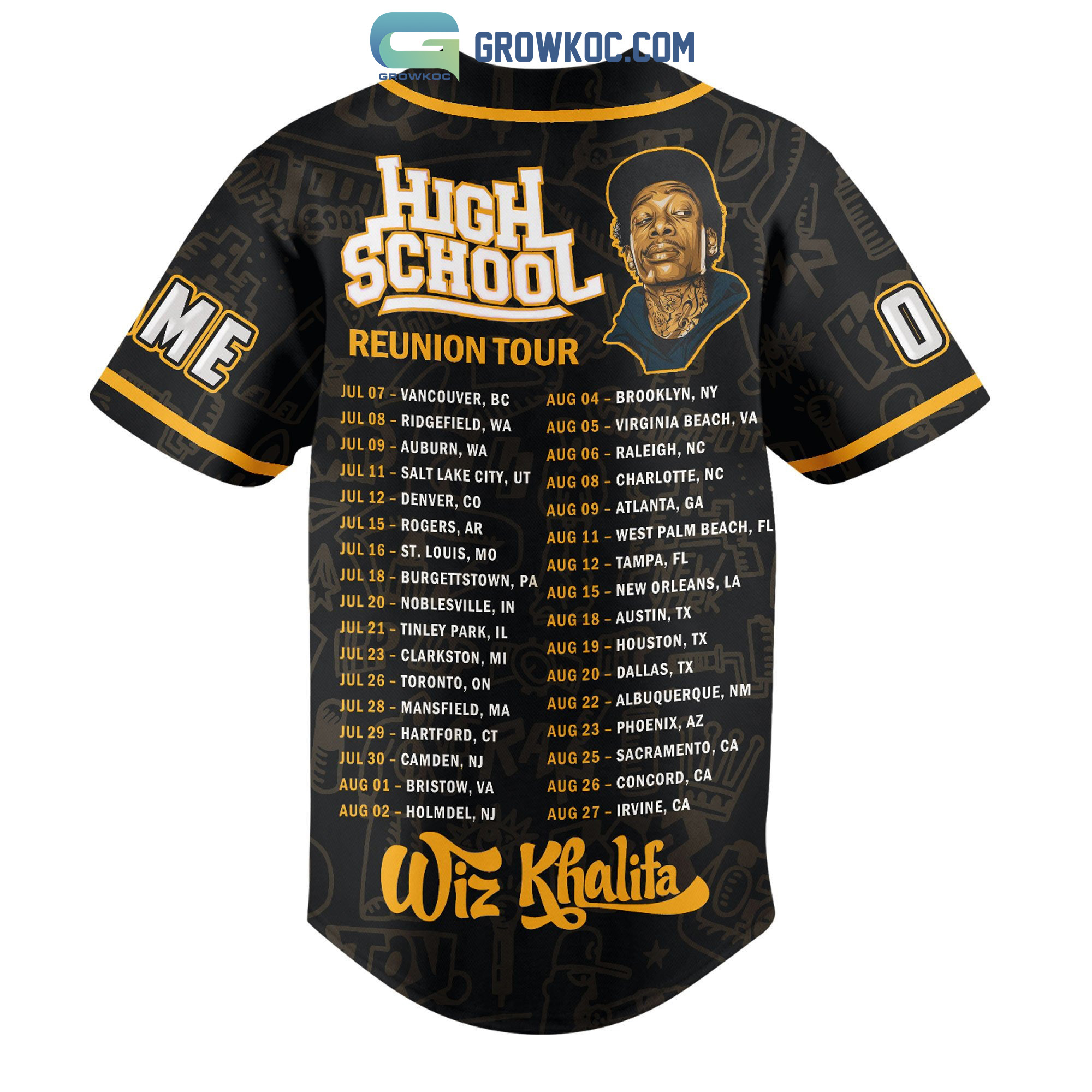 Wiz Khalifa High School Reunion Tour Personalized Baseball Jersey