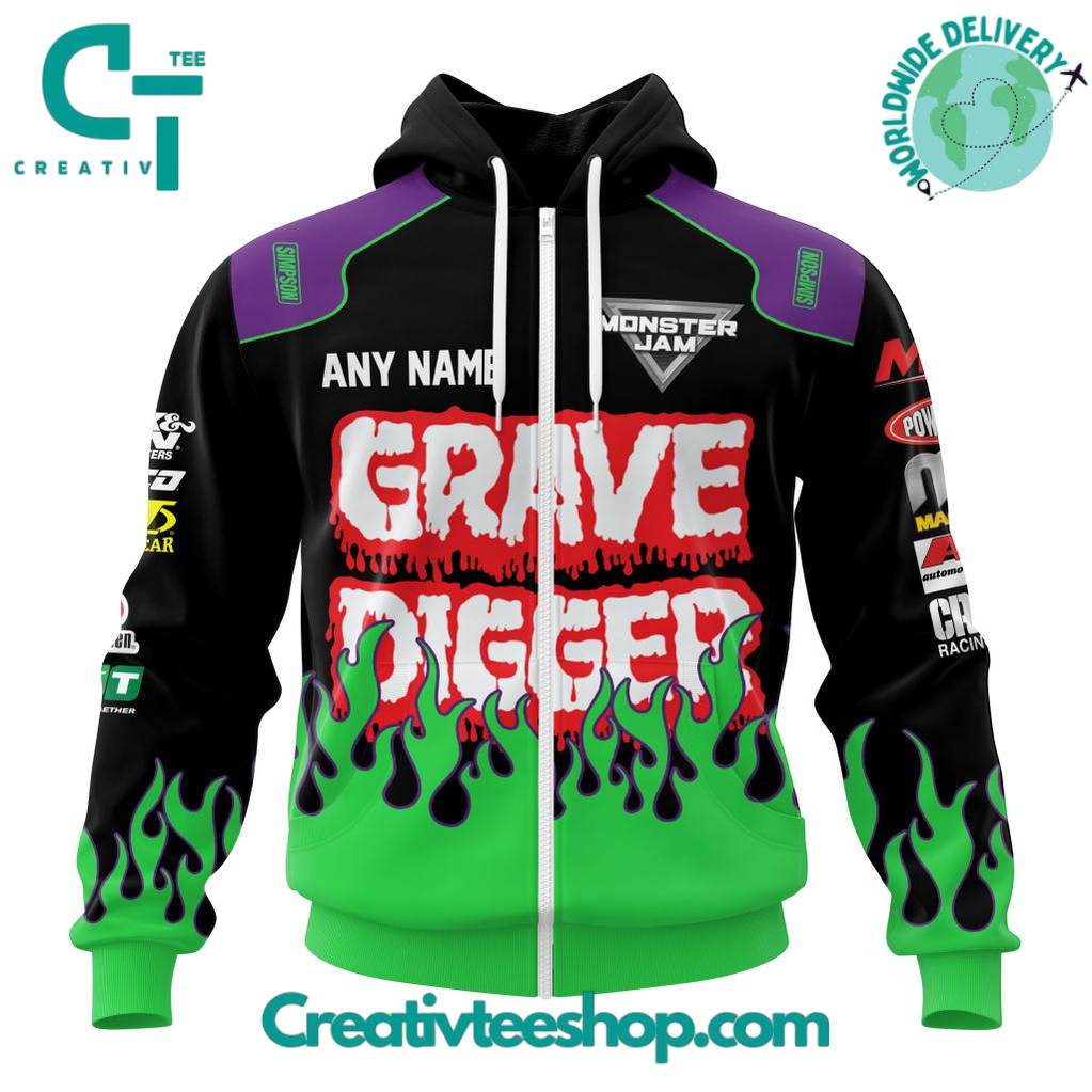 Grave Digger Monster Jam Green Flame Personalized Hoodie