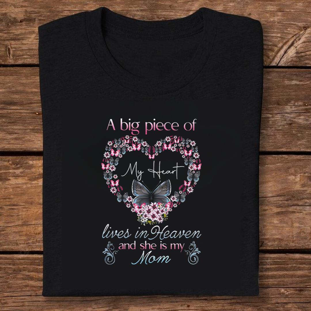 A Big Piece of My Heart Lives in Heaven – And She Is My Mom T-Shirt – Black, M